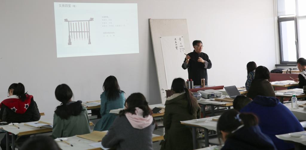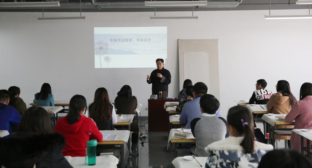 专题班授课将持续一个月左右的时间,期间每周日下午在沙河校区集中授课,共计16学时,对学习考核合格的同学计1学分。在随后的几次集中授课中,翟德年先生还将讲述商代书法、秦代书法、汉代书法、魏晋南北朝书法、隋唐书法、宋元书法、明清书法及近代书法等,每次课程都将安排书法示范和创作训练,以提高选修同学的书写水平。还将根据实践教学需要,适时安排驻校艺术家在展览现场,进行书法创作示范与实践辅导,吸引沙河校区更多同学参与到对书法文化感悟及书写实践中。