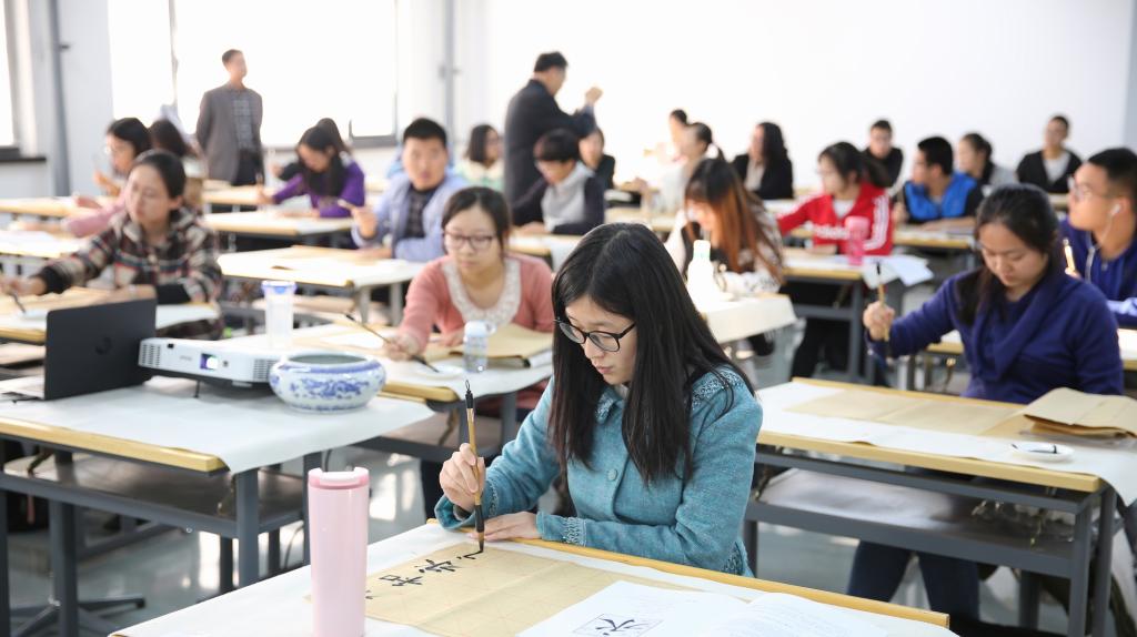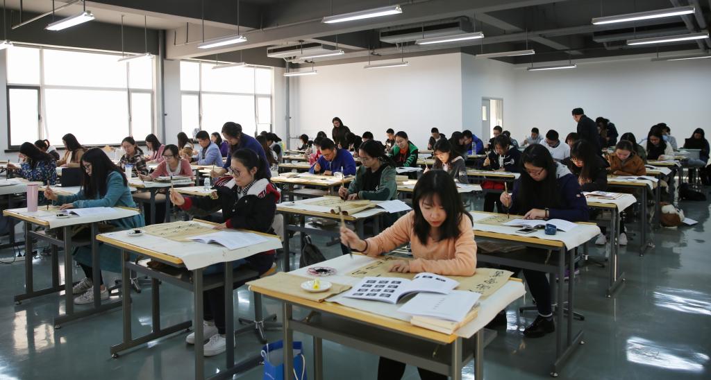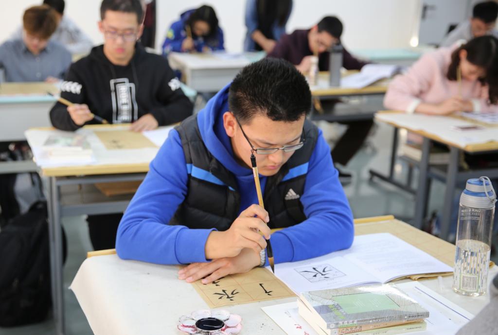 本届“艺文赏析与体验·驻校艺术家计划”书法专题班,共录取了近60名一、二年级本科生参加免费学习。专题班采用集中授课、示范和创作实践等形式,旨在通过理论学习使学员们对中国书法的历史有概略的了解;通过经典作品赏析提高学员们的书法鉴赏水平和对中国传统文化的认识;通过对基本技法和作品临摹训练,提高其书法书写的能力,并根据自己对中国书法的理解和感悟,结合掌握的技法,创作出自己的书法作品。