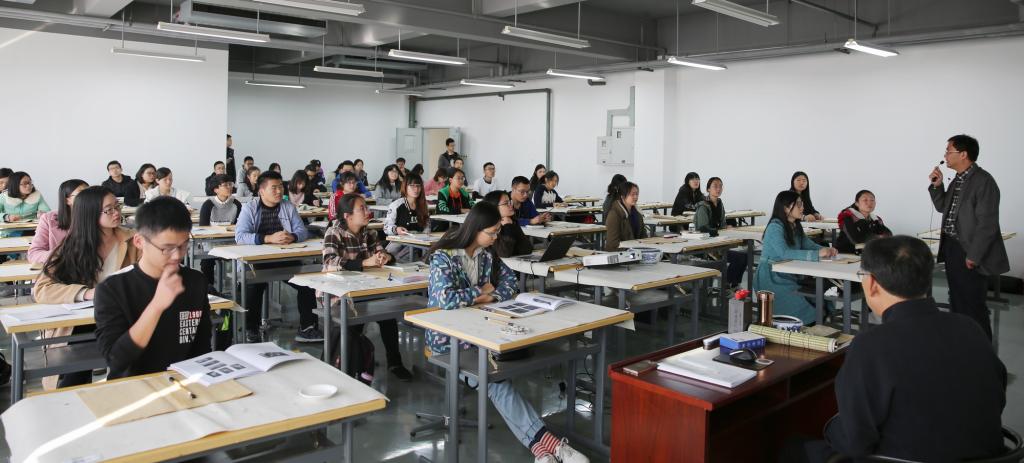 10月29日下午2时30分,在沙河校区实验6号楼302专用教室,近60张绘图桌上整齐地摆放着笔墨纸砚,偌大的教室座无虚席,翟德年先生担任主讲教师的“中国书法赏析与创作”专题班正式开课。