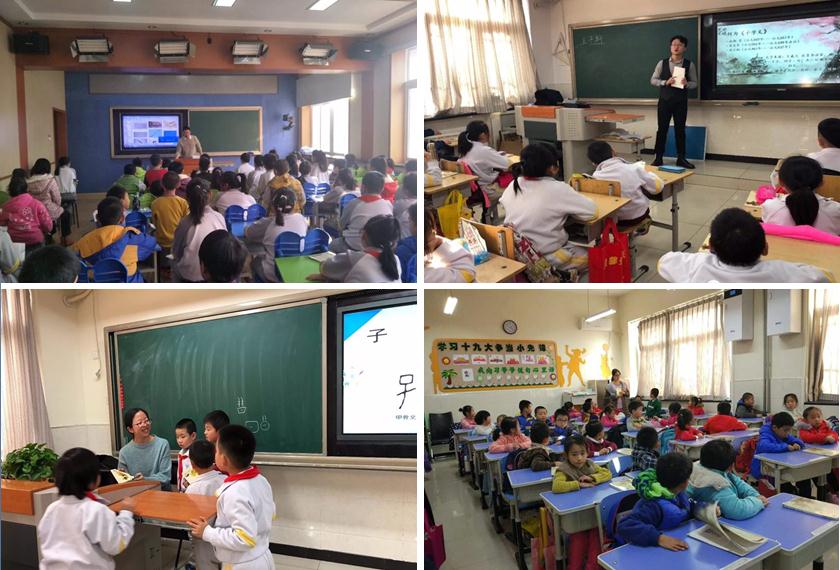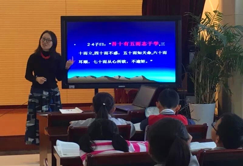 此次国学课堂讲授面向全校五个年级,分别由李静老师为五年级师生讲授《论语》,于昊甬同学为四年级师生讲授《声律启蒙》,王子轩同学为三年级师生讲授《千字文》,于祎雯同学为二年级师生讲授《三字经》,李思颖同学为一年级师生讲授《弟子规》。