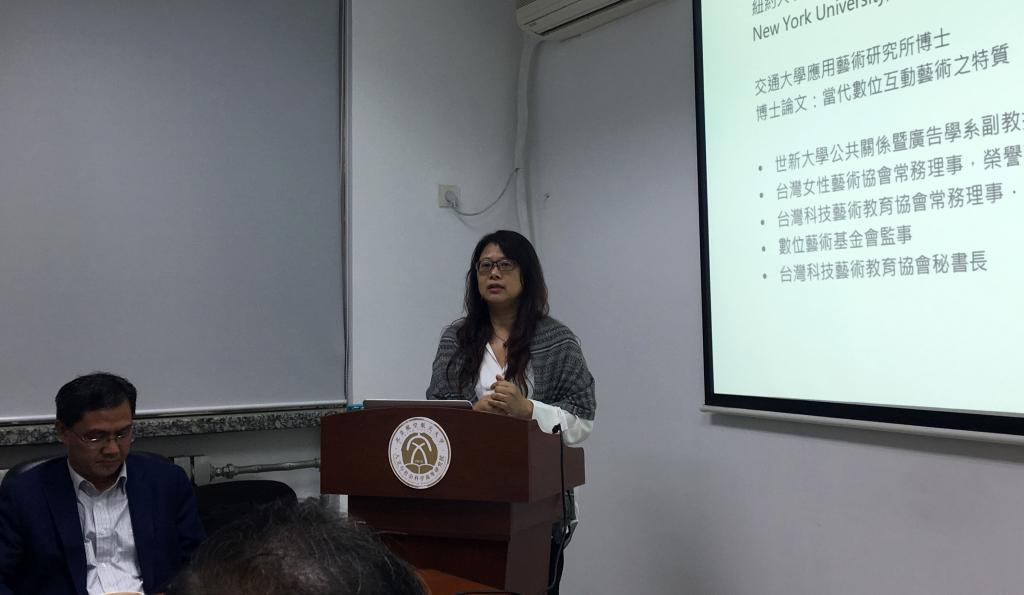 4月2日下午,受北京欧美大片ppt免费大全人文与社会科学高等研究院之邀,台湾世新大学公共关系暨广告学系专任副教授曾钰涓博士做客“北航高研论坛”,以“数位艺术讯息传递与感知共鸣”为题,在高研学术坊做了一场精彩的学术讲座。本次论坛由北航高研院院长蔡劲松教授主持,于金龙书记、杜治洲副院长、院学术委员会主任张耀南教授以及部分教师、研究生等一同聆听了讲座。