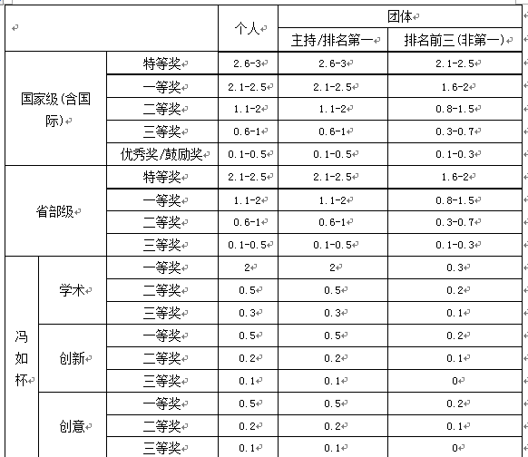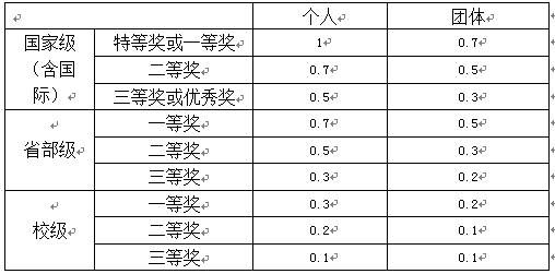 1.参加各级各类学术竞赛、科研竞赛、学术实践成绩计分(每项):