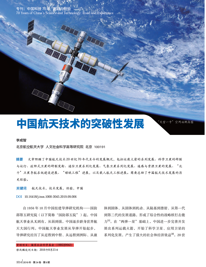 李成智教授发表在《中国科学院院刊》2019年第9期的论文《中国航天技术的突破性发展》在2020年和2021年连续两次入选该刊年度10佳热文榜。该文被《学习强国》平台转载,阅读量达18万+。
