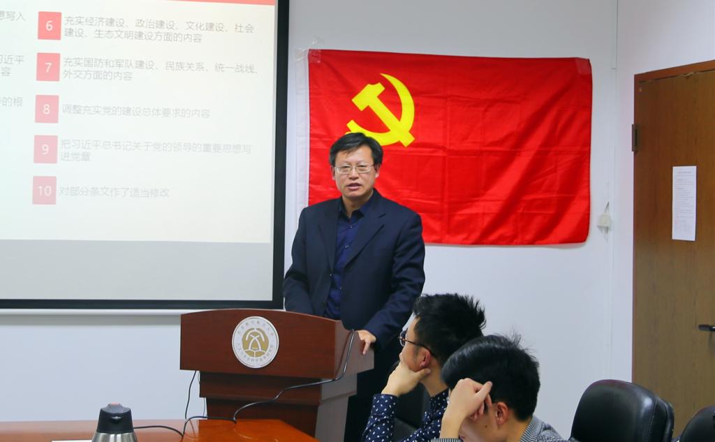 11月28日,为进一步深入学习宣传贯彻党的十九大精神,深化师生党员对十九大精神的理解和感悟,高研院直属党支部在西办公楼105举办学习十九大精神专题党课第二讲,由高研院直属党支部书记于金龙做题为《学习遵守新党章 做新时代合格党员》的党课培训。
