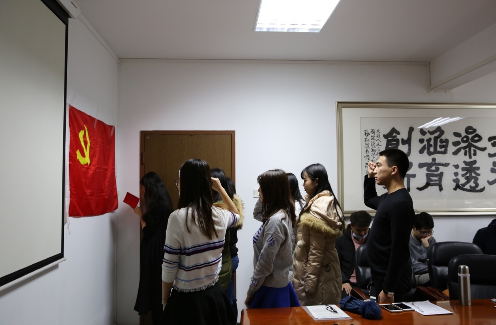 随后,本科生党小组组长李曦同志带领7位同志在党旗下重新宣读入党誓词,支部委员田飞龙老师代表支部肯定了7名同学在过去一年中的表现,并希望他们在今后的日子里继续系统地深化研读马列主义,扎根中国大地深刻理解新时代下中国特色社会主义道路的发展经验。
