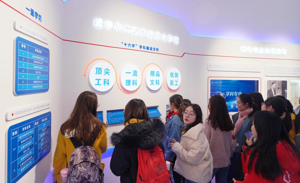 《今日北航》以白色为基础色,北航蓝、中国红为辅色。入口处的流线型设计是流体力学的设计形式火箭、飞机的造型,体现着北航的学科特色。展览共分为“学科建设”“人才培养”“教师队伍建设”“科研创新”“国际交流合作”“党的建设”六大板块,通过照片、视频、实物模型以及多媒体科技展示手段生动集中地展示了学校近年来各方面工作取得的成绩以及建设中国特色世界一流大学的决心。展览过程中,同学们不禁感叹,北航的今天与昨天是如此的不同,今天之学校建设、教学体系、师资力量与教育水平,都与昨天不可同日而语;北航的今天与昨天又是如此的相同,“德才兼备,知行合一”的校训依然是每一位北航人的行动指南,“空天报国,敢为人先”的理想依然炙热于每一位北航人的心头。