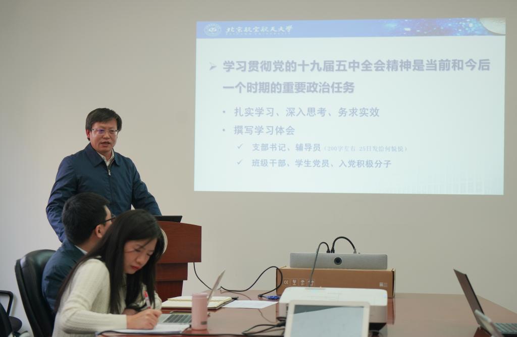 随后,在交流分享环节,专兼职辅导员、党支部书记和学生骨干等分别结合对党的十九届五中全会精神的认识和理解,分享了自己的学习感悟。于书记最后总结强调,学习贯彻党的十九届五中全会精神是当前和今后一个时期重要的政治任务,高研院全体师生要深刻认识党的十九届五中全会重大意义,扎实学习、深入思考、务求实效,切实把思想和行动统一到党中央决策部署上来,要以高度的政治责任感和使命感,抓好全会精神的学习宣传和贯彻落实,切实把全会精神传达到每个基层党组织、每名党员和每名师生,要在学院集体学习基础上,各党支部、团学组织要有针对性的开展学习,按照学校“两层次一结合”要求,原原本本学、全面系统学、联系实际学,力争学懂弄通、学深悟透全会精神。