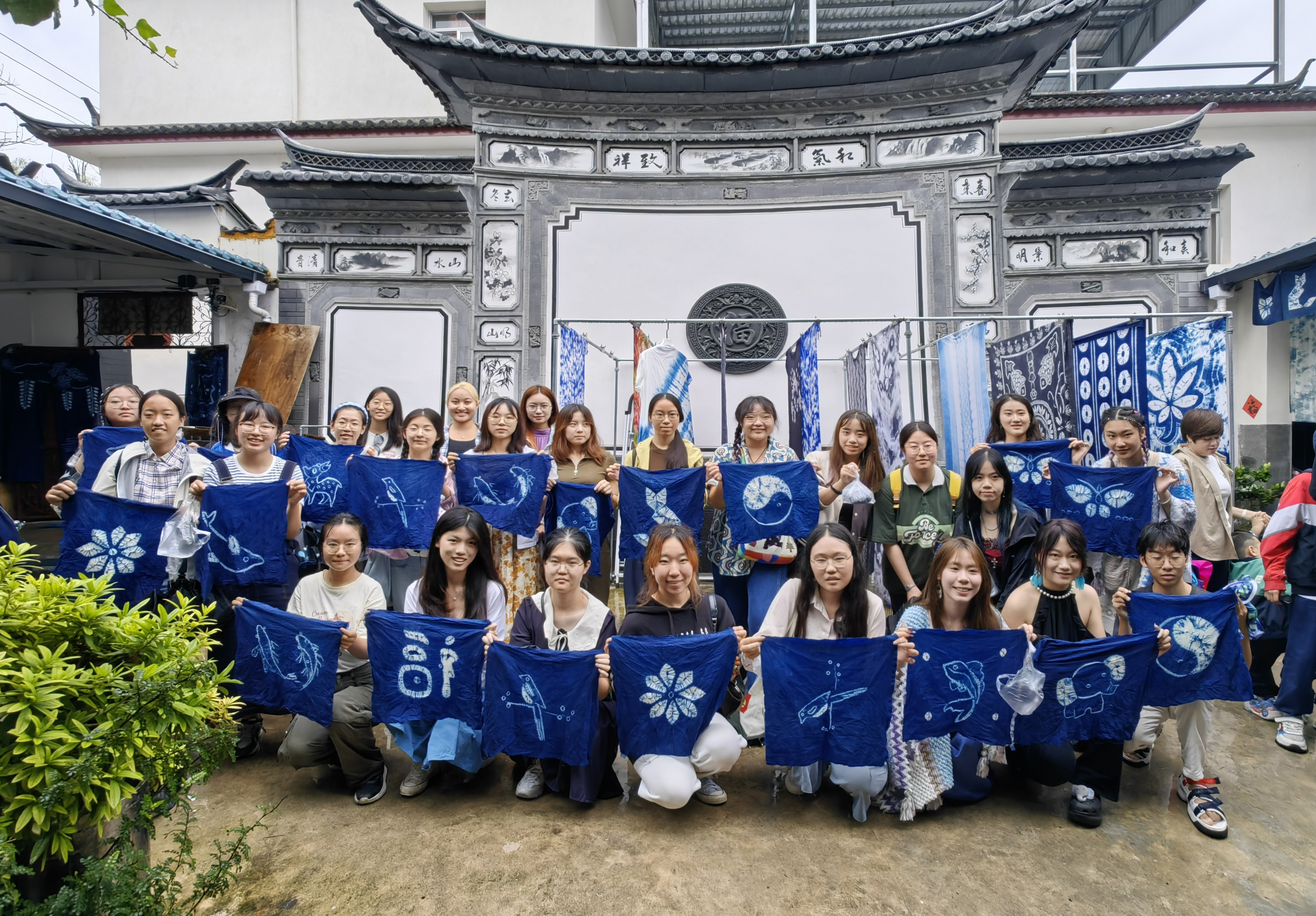在崇圣寺三塔,680余件珍贵文物让同学们赞叹不已,无不显示出大理历史文化的璀璨。众人在大理古镇“洋人街”领略古今碰撞的魅力;在喜洲古镇调研白族传统建筑,“粉墙画壁”、镂空木雕体会白族人民的独特审美。在周城,师生们体验了白族非遗扎染,这是一种保存了1000多年的古老印花工艺,显色青翠,凝练素雅,在绞扎、浸泡、染布、蒸煮、晒干、拆线、漂洗、碾布等步骤中,同学们感受到了扎染艺术的古朴魅力。
