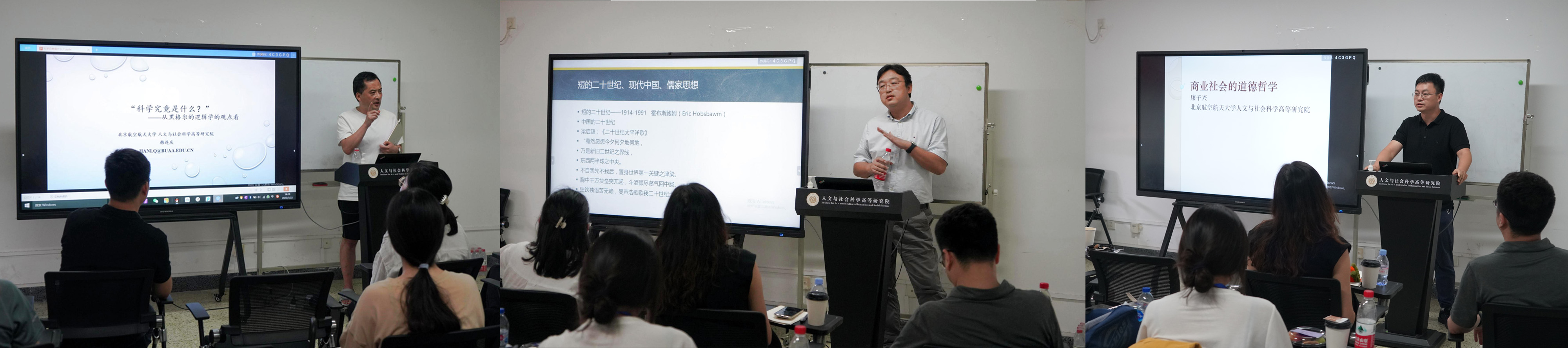 在哲学分营,韩连庆老师从黑格尔逻辑学的角度讲解了科学、哲学是什么与科学技术哲学研究的基本问题。康子兴老师以“商业社会的道德哲学”为题,从商业社会与政治经济学的关系入手,通过对欧洲商业社会历史的讲解指出商业社会的道德哲学。盛珂老师以“‘旧邦’何以‘新命’:现代中国儒家思想自我转化的两条道路”为题,阐释了基于理学、心学的儒家思想现代转化的两种路径方式及其意义。